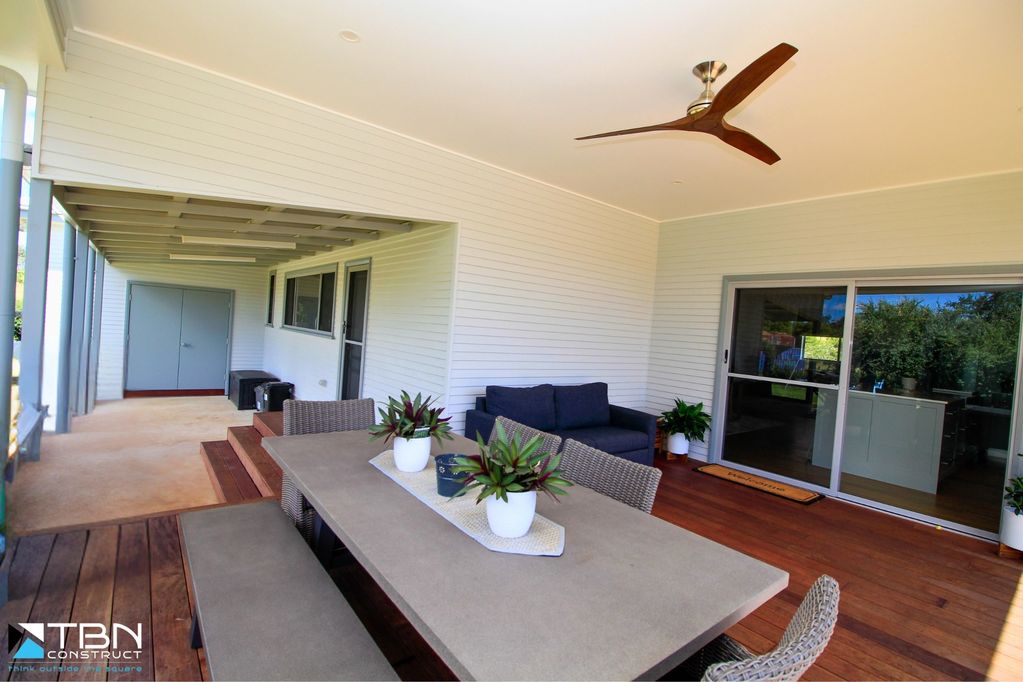 An outdoor space fit for summer entertaining, with a fan that compliments the beautiful deck.