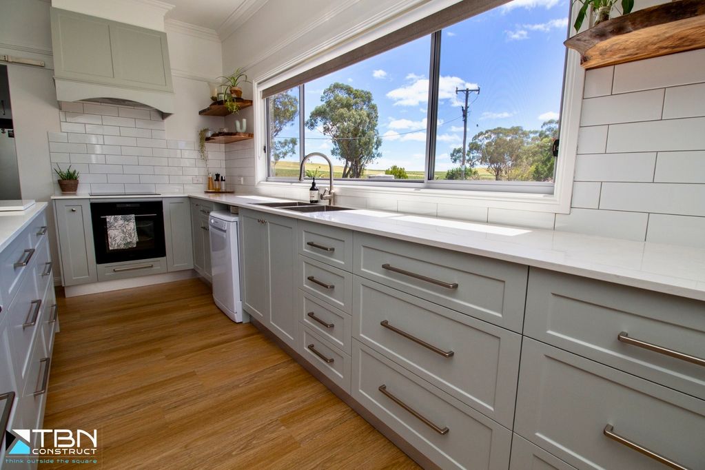 The Team at TBN, with our trusted trades, created this beautiful kitchen with shaker style cabinets. Make washing up enjoyable with a view like this.